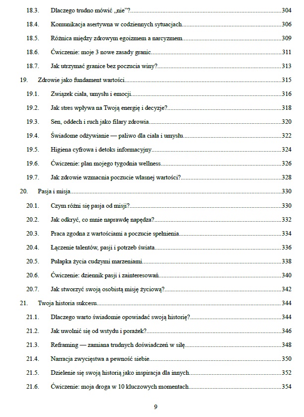 - aż po świadomość finansową, niezależność i życie w zgodzie z własnymi wartościami.